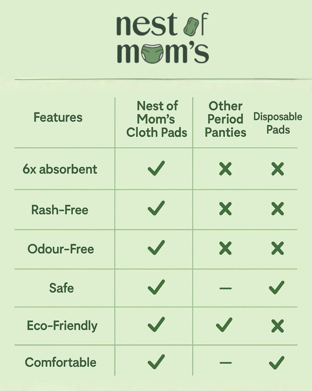 High absorption, rash-free, and completely reusable. An affordable alternative that's gentle on your body.